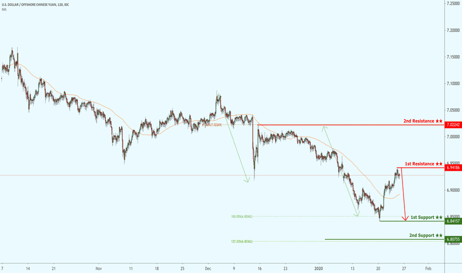 USDCNH is approaching its resistance at 6.9419 where it is could reve