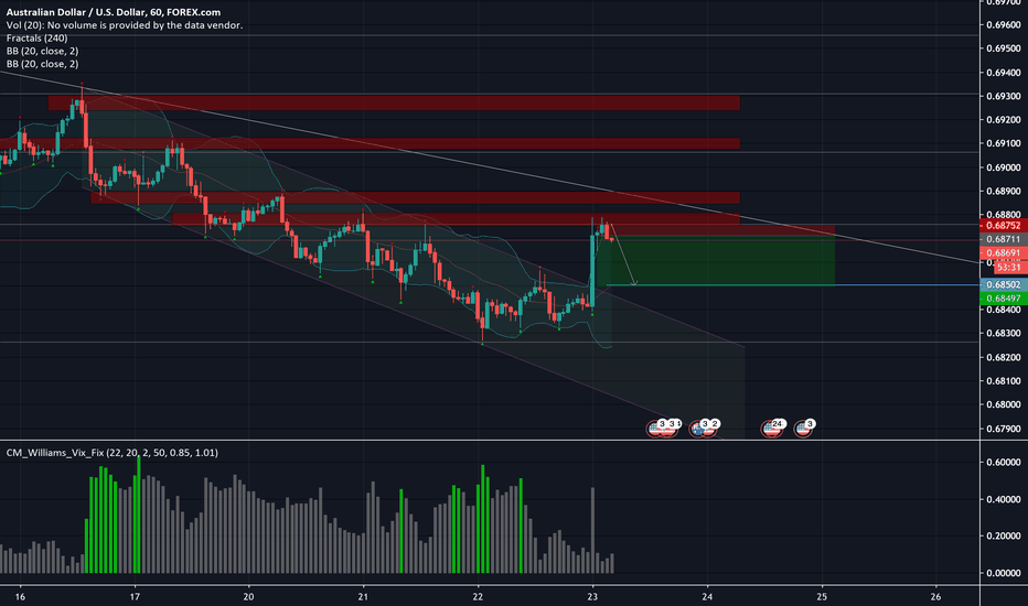 Shorting AUDUSD as it broke out of downward channel but was rejected a
