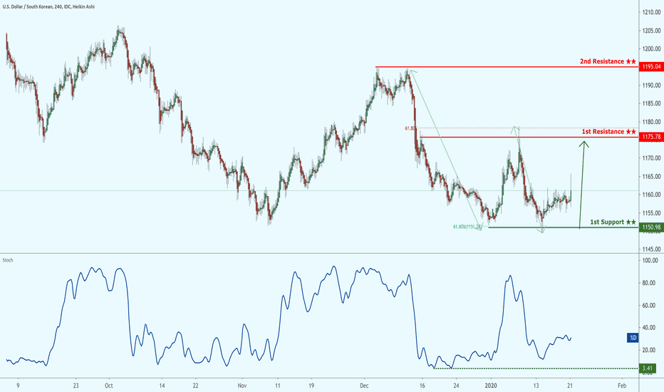 USDKRW approaching support at 1150.98 where it could potentially rise
