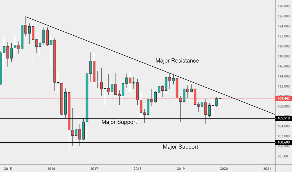 Price is in a squeeze between the downward sloping Major Resistance li