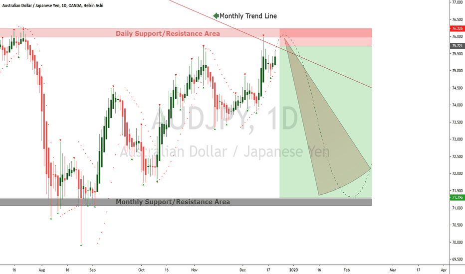 AUD/JPY is starting to show a possible trend reversal on the DAILY CHA