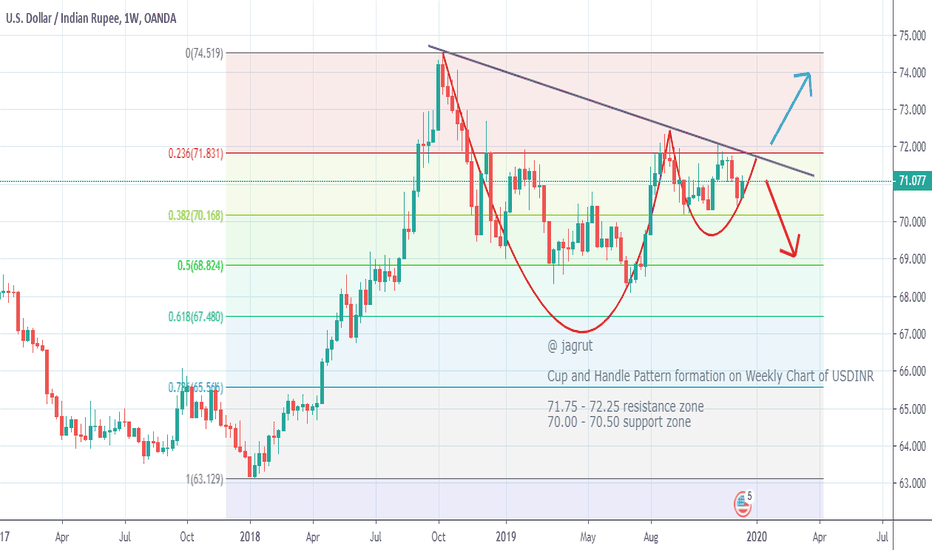 On Weekly chart USDINR Currency pair is forming the Cup and Handle Pat