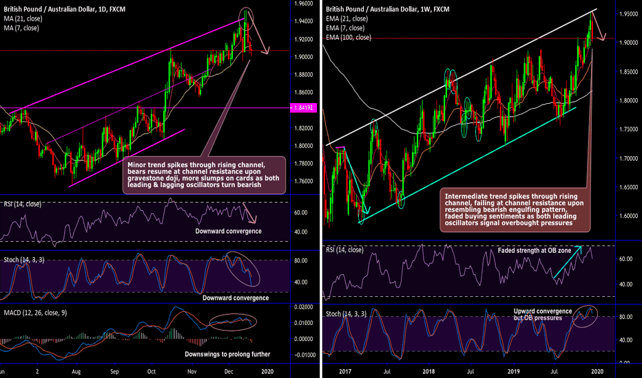 GBP/AUD Gravestone Doji Pops-up At Channel Resistance To Resume Downsw